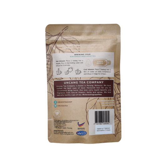Uncang Tea Company was founded in Penang in 2018. Recipes were created from a home kitchen, where a series of color mixology has been done to create beautiful tisanes for family and friends gatherings. The aesthetic beauty of these colorful tisanes is the unique value of Uncang Tea. Our local blends focus on locally sourced ingredients and sustainable packaging for your convenience to enjoy at home. We wish you enjoy sipping our tea around the globe.
